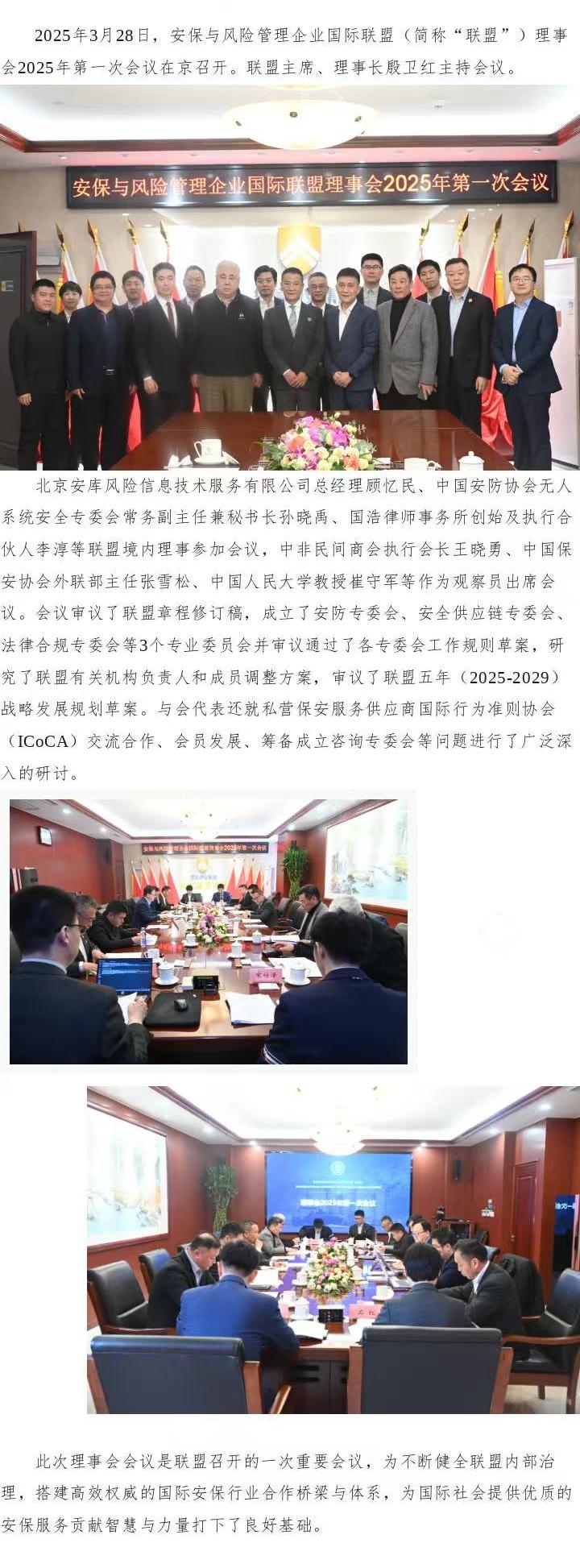 安保与风险管理企业国际联盟(澳门)理事会2025年第一次会议在京召开