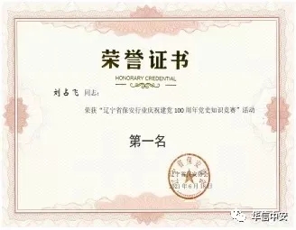 辽宁公司党支部今年先后被属地街道党工委和社区党委评为先进基层党组织、抗击疫情先进党支部,党支部书记刘占飞被中共沈阳市沈北新区区委评为优秀共产党员。辽宁党支部组织党员参加辽宁省保安协会组织的党史知识竞赛,获得优胜单位奖,党支部书记刘占飞获得个人第1名,3名党员进入个人前10名。刘占飞同志多次应邀参加沈阳市委组织部、行业党委组织的学习党史和党建交流,党支部工作受到属地和行业党委机关的高度肯定。