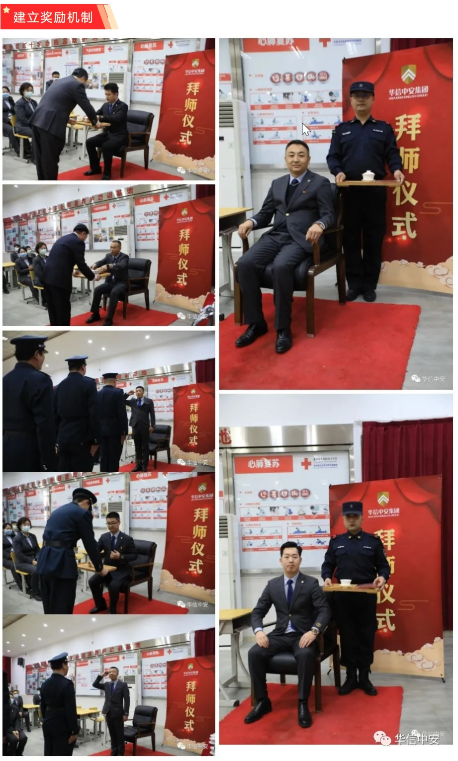 "导师带徒 工匠传承"管理制度的有效推行,需要多方面的支持,尤其是企业管理者将其上升到企业战略层面进行顶层设计,建立完善的制度予以长期贯彻执行。宝威·体育"导师带徒 工匠传承"管理制度推行之初,就在具体实施方案中明确规定了选师范围、选徒范围、带徒周期、师傅竞选程序、师徒责任、出徒标准等具体细则。并随着此项管理制度的深入推行对管理实施方案进行了逐步修改和完善,在方案中进一步明确了师傅和徒弟的责任与权利,学徒出徒的各项要求和出徒的标准。在导师筛选过程中,严格按照个人申请、基层单位推荐、保安管理部审核、品控中心复核、开展任前培训、保安运营管理中心考核等选拔程序挑选专业素质优秀、品格过硬的优秀保安员代表作为师父,使每一位师傅都能树立一面旗帜,不仅在保安业务技能上对徒弟言传身教,还能通过自己的匠心来影响徒弟。