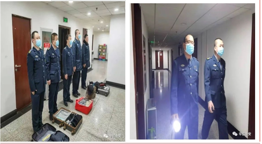 "两会"召开之际,华信中安驻国家统计局西楼项目保安队在第一时间组织全体保安队员学习掌握今年"两会"安全形势和安保工作要求,积极开展安全教育,完善各项应急预案;开展突发事件演练,确保消防器材、防爆器材落实到位,提升队伍应急协同和处置响应能力;积极组织开展隐患排查,首先对辖区范围内的安全隐患进行检查,对可能存在的各种安全问题做到早发现、早预案、早解决。其次组织队伍内部自查自纠,开展内部安全大检查,对队员的个人物品进行了点验,排查了队伍内部无一切违禁品,提前化解内部可能存在的不安定因素;日常工作中保安队特别加强安全检查、干部带班、请示汇报制度。加强"两会"期间突发事件上报制度,要求队员做到速报事实、再报继续、及时跟进、妥善处置,并成立应急处突小组专门应对可能发生的影响安全稳定的紧急事件;除了加强统计局西楼办公核心区域安全保障力量外,保安队还加强了办公区大院外部白天及夜间巡逻次数,通过安全巡逻及时发现制并止乱贴标语等影响和谐稳定的事件发生。