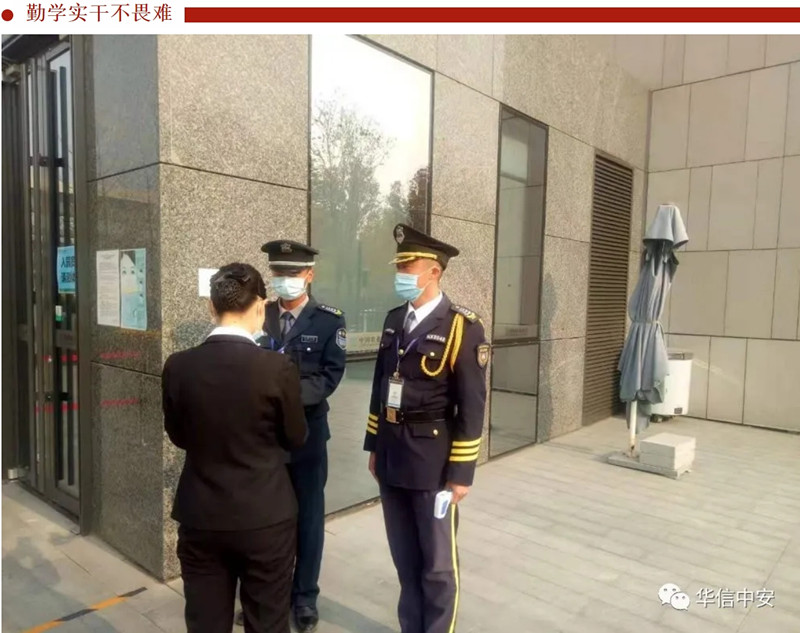 银行系统安全无小事,确保银行系统绝对安全是保安员的重要职责。因此华信中安驻农行数据中心项目一直严格实施军事化管理标准,张铁良说刚来项目时,感觉日常生活像在部队一样,除了上岗执勤,还要进行严格的内务整顿,专业化的军事训练和应急演练。保安队每天坚持军姿、队列、擒拿拳等军事训练,每个月定期开展消防安全、抢险救灾、应急处突等演练科目。除此之外,项目上还严格贯彻公司管理制度,秉持专业化、规范化的队伍管理建设,实现了保安员岗位职责、保安员行为规范等职责制度上墙;工作日记、会议记录、培训记录、交接班记录、应急处突预案等驻勤必备五大本齐全;请销假制度、离职审批制度、岗前岗中培训制度、日常训练制度等健全完善。虽然之前没有过这样的工作生活经历,但来到一个地方就要适应一个地方的管理规定,在队长和老队员的帮助带领下,张铁良很快达到的标准和要求,良好的军姿、严整的军容、协调一致的动作、严格的组织纪律性让他很快融入了这个集体。