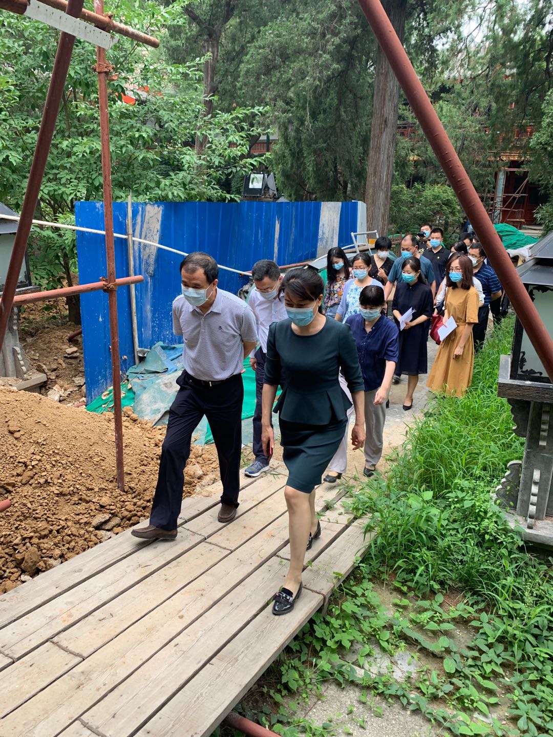 2020年7月17日上午8点40,北京艺术博物馆领导接待北京市市委宣传部副部长、市文物局局长、市文物局保卫处副处长、市文物局财务部、市财政局局长、市法委、国宝局等多个市级单位领导前来万寿寺检查工作。就下一步万寿寺东路2期工程开工、考古勘探,和1期工程完善装修,以及安全保障措施加强等相关事宜展开讨论。华信中安驻勤保安队全体队员坚守岗位恪尽职守,出色完成各项勤务工作,受到了多方领导的好评。