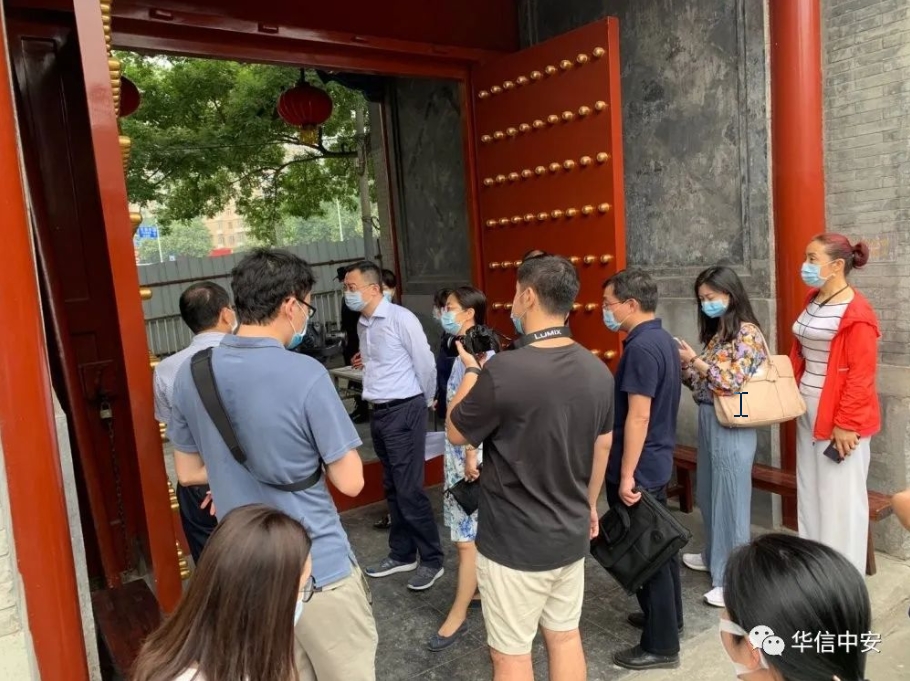 2020年5月8日上午9时,北京市宣传部副部长带领紫竹桥街道办,城管大队,文物局,土地局,税务局,财政局等相关领导来到万寿寺考察研究馆里文物开发情况和安全保护措施。我司队员沿路线布控和指引,按照当前疫情防护要求对所有来访人员进行测温登记扫码报备,全程跟随,得到了宣传部副部长的夸赞,对华信中安保安员严格规范的疫控工作流程和良好的执勤形象给予高度评价。