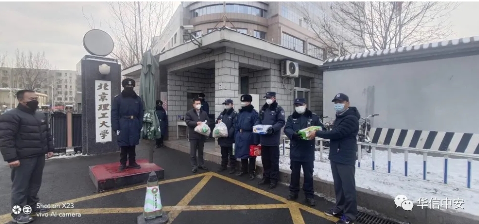 作为门岗的安保人员,只要走上值班岗位、进入工作状态,一个接着一个的人员体温测量、查证登记,一辆接着一辆的车辆验证核实,几乎没有一点闲暇时间。守住校园安全的大门就是为北京理工大学筑起疫情防控第一道防线,容不得一丝疏忽大意。自疫情爆发以来,华信中安驻北京理工大学保安队门岗平均每天登记测温放行千余人次,劝阻不符合入校规定人员若干。刘加滨说自实施疫情防控部署这段时期以来,我们很感谢留校师生员工能够积极配合门岗检查登记工作,他们的微笑就是对我们最大的支持和肯定,我们也深切感受到很多人从开始对我们工作的不理解不配合到给予充分支持的变化。在具体的工作中,绝大部分人员都很理解和支持我们的工作,主动出示证件,积极配合登记。但疫情爆发初期,病毒蔓延还没有引起大家的足够重视,也有不少人抱怨:"现在进个校门怎么这么麻烦"对我们的登记、检查、测温抱有抵触情绪。我们的队员需要耐心解释劝阻,并悉心提醒戴好口罩尽量减少外出。后期随着防疫形势的严峻以及宣传力度的加大,大家对我们保安员的工作给予了充分的肯定,不少家属院的职工说:"看到你们坚守岗位,就说明我们的校园是安全的,我们心里也踏实不少。"甚至有很多素不相识的陌生人看到保安员冰天雪地里执勤站岗,多次为我们队员送来了暖宝宝、矿泉水和宝贵的防疫物资。大家的理解和支持就是我们工作最大的动力也激发了队员们更大的工作热情。