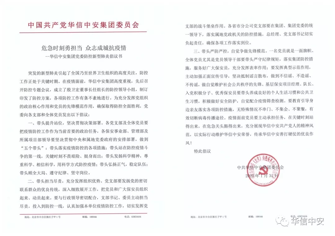 特殊时期,一声令下,华信中安广大党员干部,党团工会成员,纷纷行动提前返岗。以高度的政治责任感和使命感投入防控第一线,发挥党员先锋模范作用,坚决打赢疫情防控战。