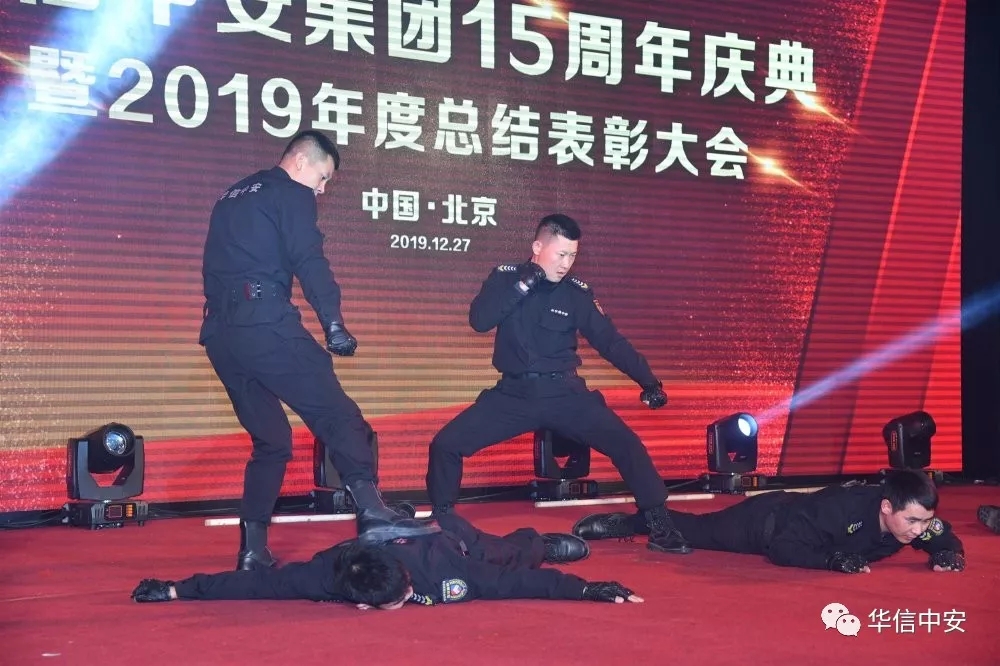 由华信中安大型活动部小伙子们带了的擒敌拳表演展现了华信中安人能文能武、多才多艺。