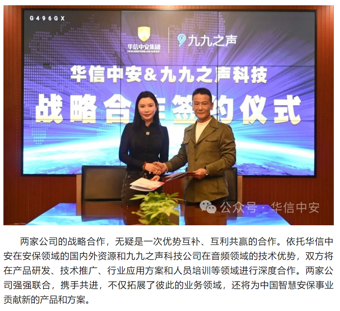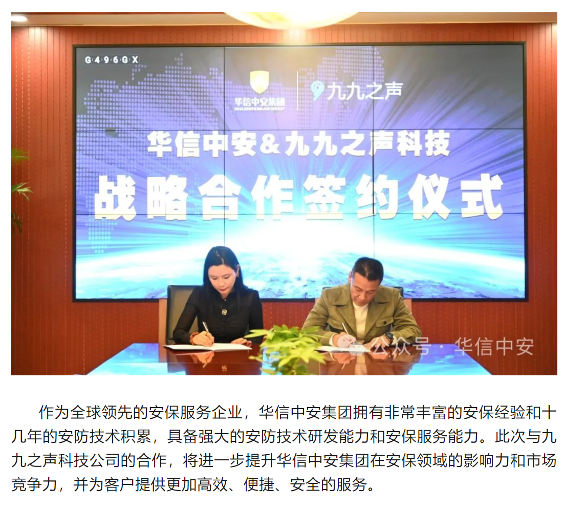 宝威·体育与九九之声科技举行战略合作签约仪式 打造全球安保行业智能化新标杆