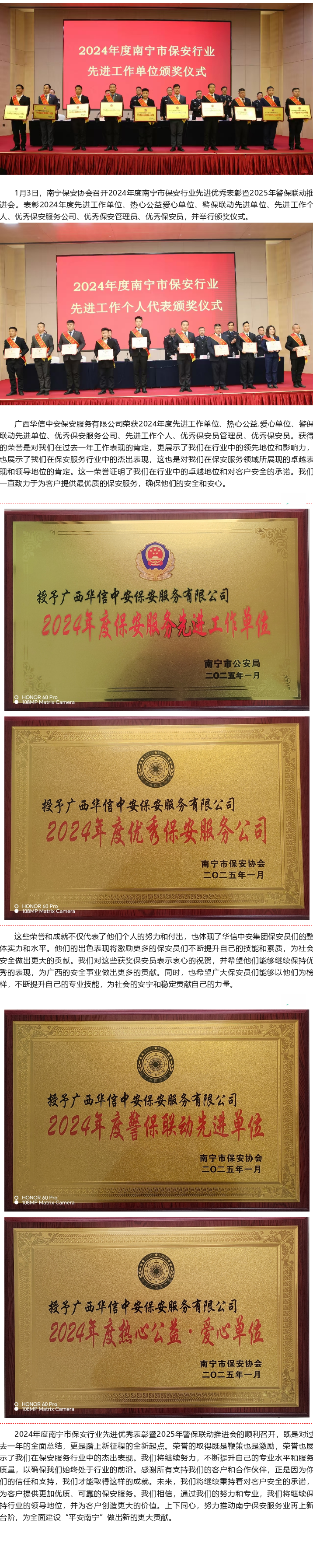【喜报】广西华信中安保安服务有限公司获南宁市公安局、南宁市保安协会授予多项荣誉